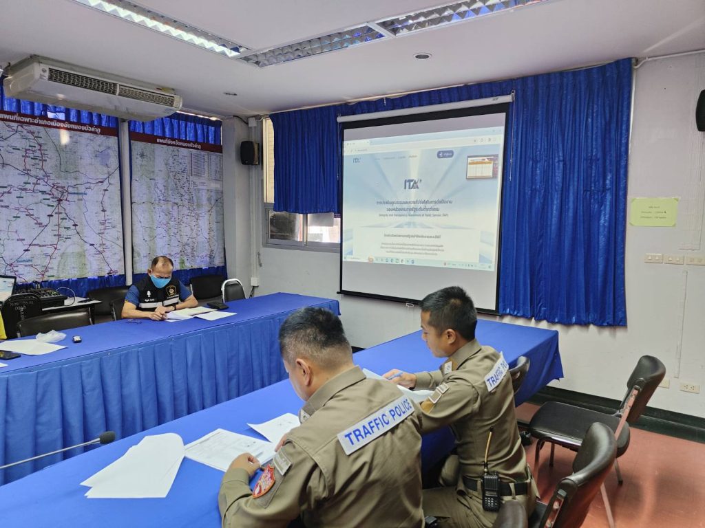 วันที่ 9 มกราคม 2567 พ.ต.อ.กฤติเดช ปทุมาพัฒนานนท์ ผกก.สภ.เมืองหนองบัวลำภู ได้เรียกประชุมหัวหน้าแผนกงาน เจ้าหน้าที่งานธุรการแต่ละแผนกงาน เพื่อกำชับการปฏิบัติและแนวทางในการประเมินคุณธรรมและความโปร่งใสในการดำเนินงานของหน่วยงานภาครัฐ (Integrity and Transparency Assessment: ITA) ของสถานีตำรวจ และทำความเข้าใจกรอบการประเมินคุณธรรมและความโปร่งใสในการดำเนินงานของหน่วยงานภาครัฐ (Integrity and Transparency Assessment: ITA) ของสถานีตำรวจ ประจำปีงบประมาณ 2067 ณ ห้องประชุม ศปก.สภ.เมืองหนองบัวลำภู
