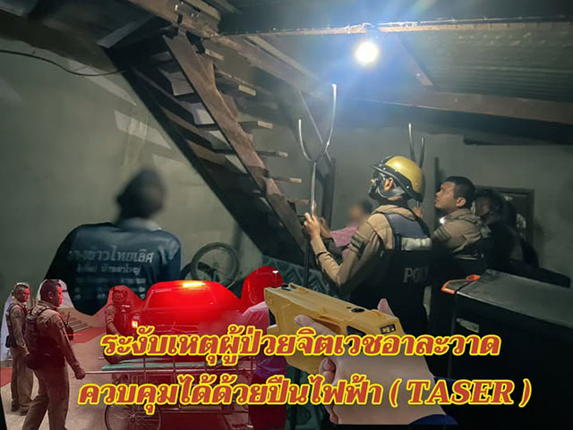 ระงับเหตุป่วยจิตเวช ควบคุมได้ด้วยปืนไฟฟ้า ( Taser )
