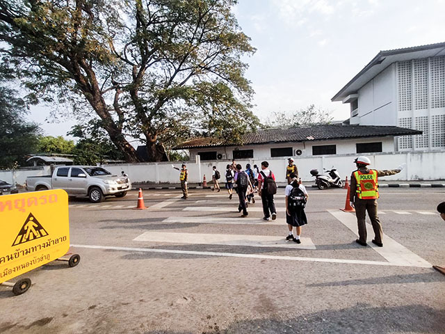 6 มี.ค. 2568 เวลา 07.00 – 08.30 น.สภ.เมืองหนองบัวลำภู โดย พ.ต.อ.กฤติเดช ปทุมาพัฒนานนท์ ผกก.สภ.เมืองหนองบัวลำภู,พ.ต.ท.วิษณุ พิมพ์โพธิ์ รอง ผกก.ป.ฯ มอบหมายให้ ร้อยเวร 6-0 พร้อมชุดจราจร สภ.เมืองหนองบัวลำภู อำนวยความสะดวกการจราจรช่วงชั่วโมงเร่งด่วน ประจำจุดหน้า สถานศึกษา ทางร่วมทางแยก จุดเสี่ยงและจุดคับขัน ภายในเขตเทศบาลเมืองหนองบัวลำ