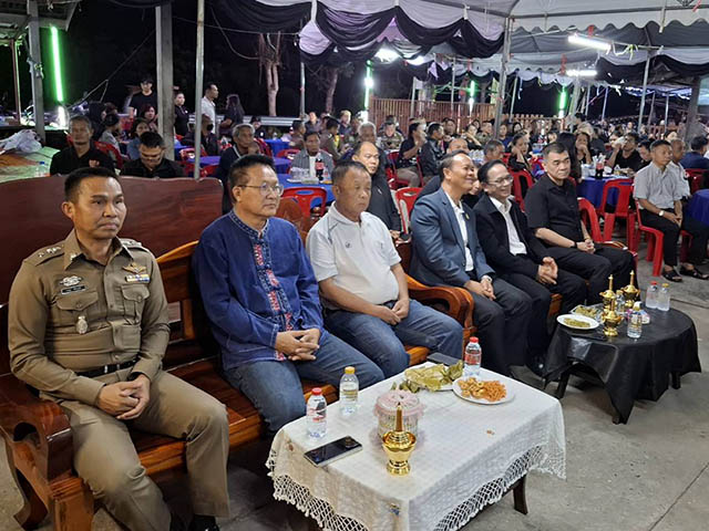 18 มี.ค.2568 เวลา 18.30 น. พ.ต.อ.กฤติเดช ปทุมาพัฒนานนท์ ผกก.สภ.เมืองหนองบัวลำภู,พ.ต.ท.วิษณุ พิมพ์โพธิ์ รอง ผกก.ป.ฯ,พ.ต.ท.เจษฎา ศรีกวนชา รอง ผกก.สส.ฯ พร้อมข้าราชการตรวจ สภ.เมืองหนองบัวลำภู ร่วมฟังสวดอภิธรรมงานศพ คุณแม่เทียม พุกหน้า มารดา ด.ต.ประจบ พุกหน้า ข้าราชการตำรวจ สภ.เมืองหนองบัวลำภู ณ บ้านท่าเดื่อ ต.ลำภู อ.เมือง จ.หนองบัวลำภู