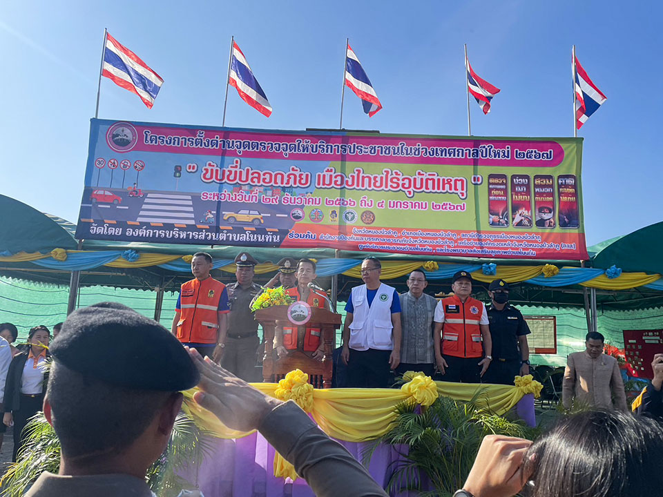 สภ.เมืองหนองบัวลำภู โดย พ.ต.อ.กฤติเดช ปทุมาพัฒนานนท์ ผกก.สภ.เมืองหนองบัวลำภู,พ.ต.ท.วิษณุ พิมพ์โพธิ์ รอง ผกก.ป.ฯ พร้อมเจ้าหน้าที่ตำรวจ สภ.เมืองหนองบัวลำภู ร่วมเปิดจุดตรวจอำนวยความสะดวกด้านการจราจรและบริการประชาชนผู้ใช้รถใช้ถนนช่วงเทศกาลปีใหม่ 2567 ณ ศูนย์บริการประชาชนโนนทัน ต.โนนทัน อ.เมือง จ.หนองบัวลำภู โดยมี นายสุวิทย์ จันทร์หวร ผู้ว่าราชการจังหวัดหนองบัวลำภู เป็นประธาน