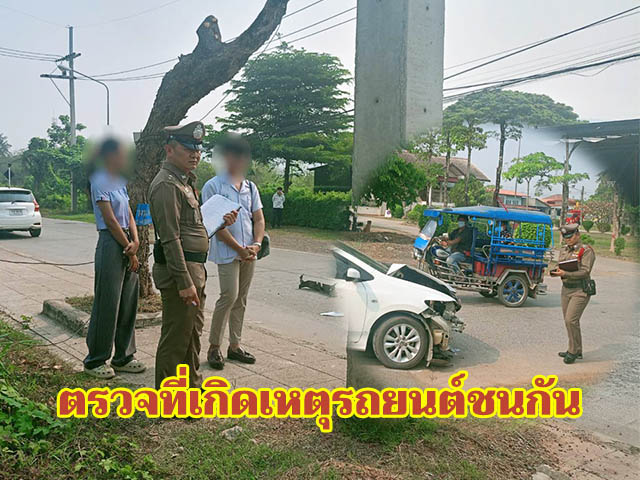 ตรวจที่เกิดเหตุอุบัติเหตุรถชนกัน