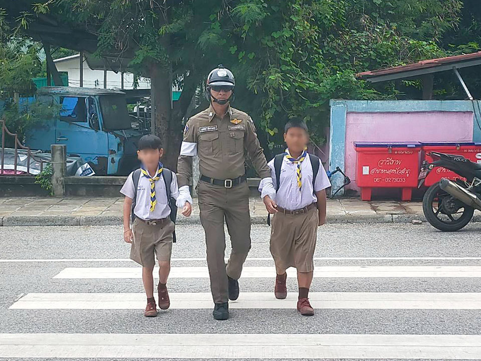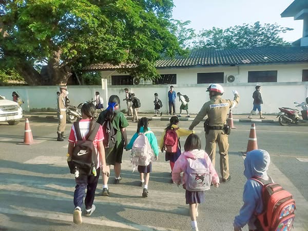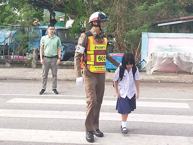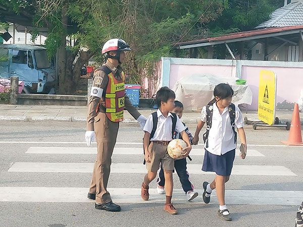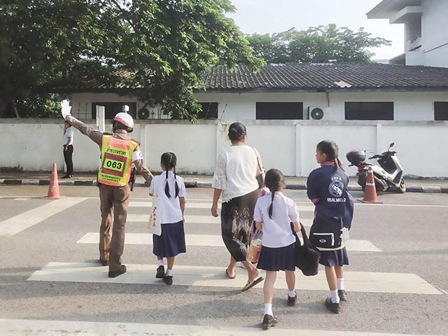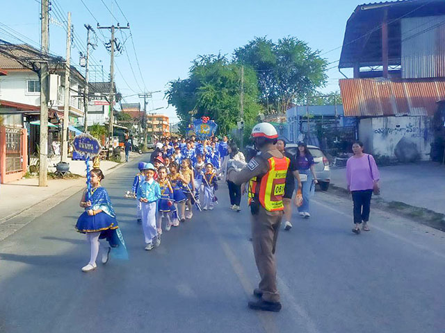 อำนวยความสะดวกจราจร ขบวนพาเหรดโรงเรียนจริยานุสรณ์
