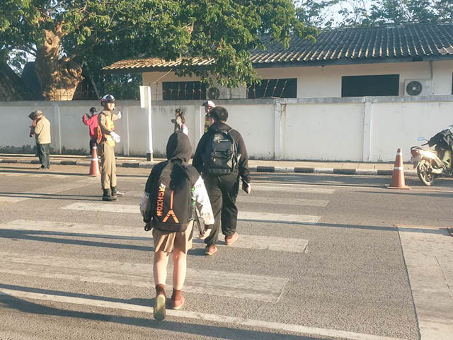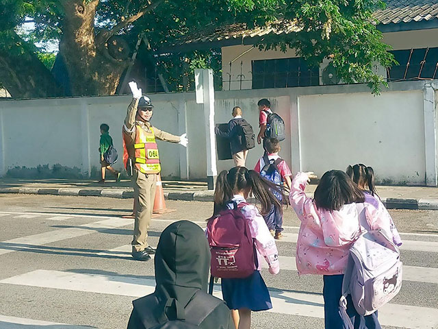 อำนวยความสะดวกจราจร ขบวนพาเหรด,หน้าสถานศึกษา