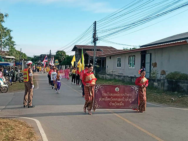 อำนวยความสะดวกจราจร ขบวนพาเหรด รร.องค์การบริหารส่วนจังหวัดหนองบัวลำภู(บ้านวังหมื่น)