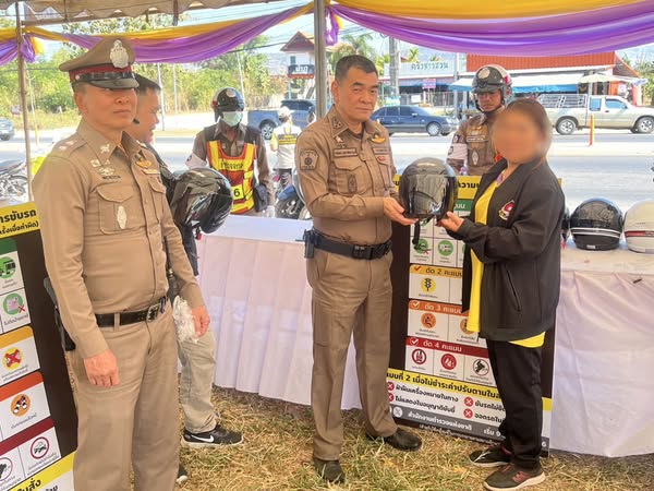 กวดขันวินัยจราจร อบรมวินัยจราจร พร้อมแจกหมวกนิรภัย