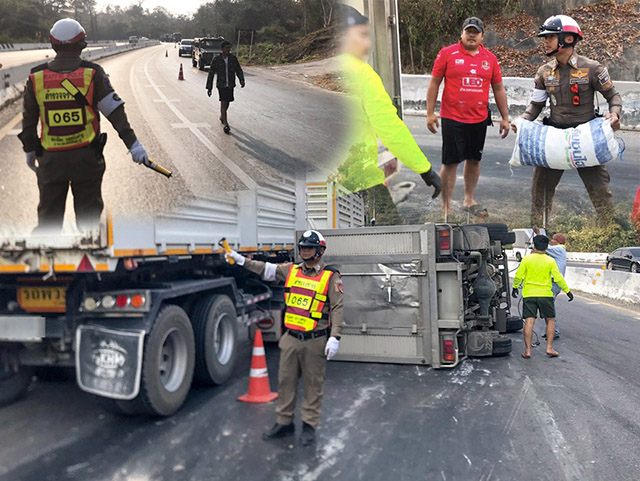 อำนวยความสะดวกจราจร รถน้ำแข็งพลิกคว่ำ